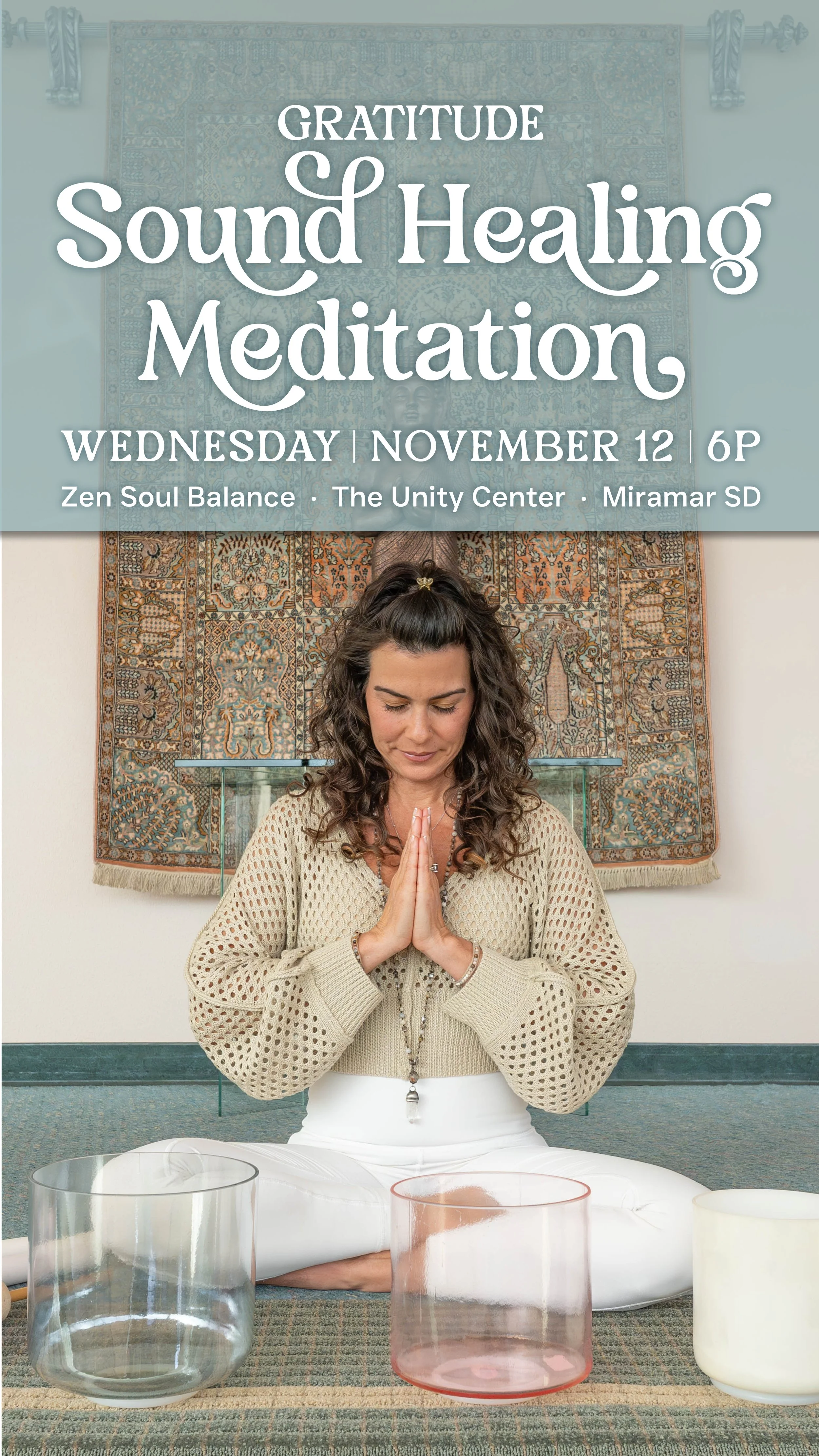 Join us at the Unity Center for a relaxing evening before the holidays. The event begins with a gratitude-focused guided meditation, followed by a sound healing session using crystal singing bowls, gongs, drums, and chimes. It’s open to all levels—no experience needed.